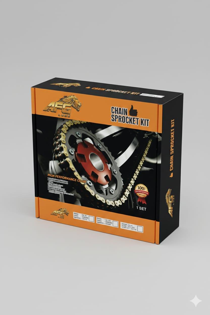 AFG Lube products are manufactured with strict quality control standards to ensure high durability and consistent performance. With strong resistance to wear and a guaranteed lifespan under normal conditions, the AFG Chain Sprocket Kit is a dependable choice for motorcycle maintenance and upgrades.