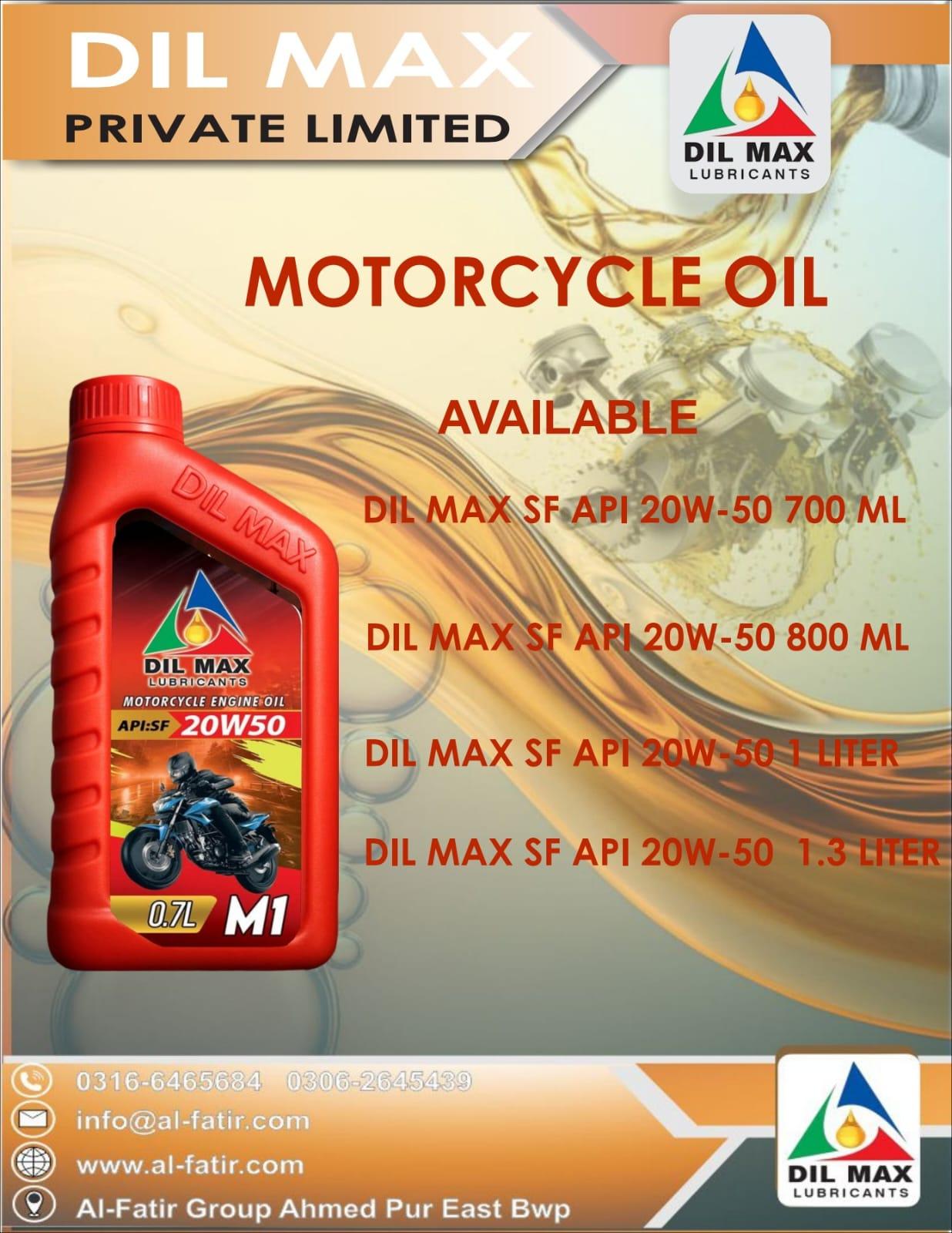 DIL MAX M1 20W50 Motorcycle Engine Oil is a high-performance lubricant specially formulated to provide superior protection and smooth performance for motorcycle engines. Designed using advanced base oils and additive technology, it helps reduce engine wear, improve engine cleanliness, and ensure reliable lubrication in various riding conditions.