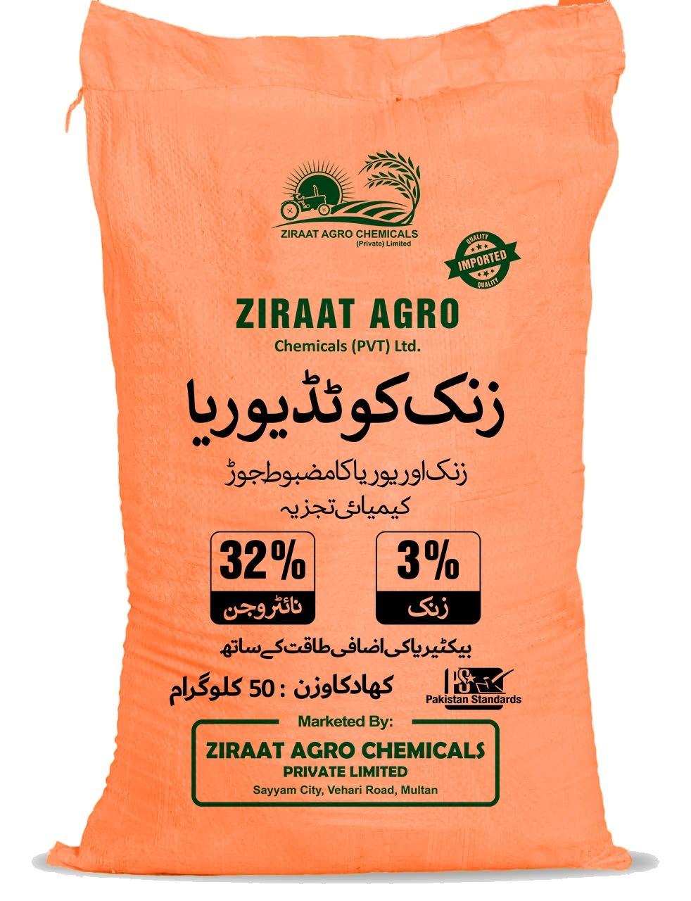 Ziraat Agro Zinc Coated Urea is a premium fertilizer formulated to provide essential nutrients for healthy crop growth. It contains 32% Nitrogen and 3% Zinc, which help improve plant development, strengthen root systems, and enhance overall crop productivity. The zinc coating helps correct zinc deficiency in soil while ensuring efficient nutrient absorption by plants.
